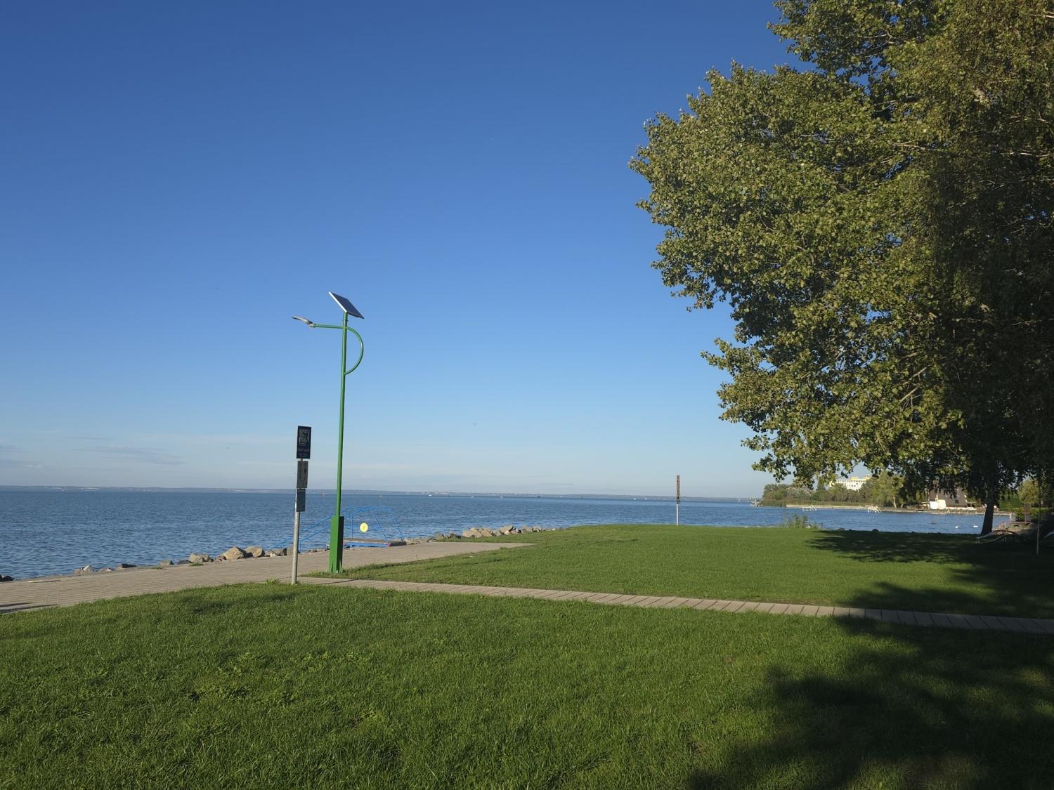 Balaton, vízparttól 100mre Lakóház besorolású új építésű két egységes ingatlan (ikerház) önálló egysége eladó kizárólagos 268nm elkerített telek használattal.! Épület elosztása: fsz: nappali -étkező - konyha, szoba, közlekedő, fürdőszoba- WC. külön WC, háztartási -gépészeti helyiség 54 nm-en, kertre néző terasz 22nm. Emelet: három (3) hálószoba 2 zuhanyzós fürdőszoba, közlekedő 44nm területen + 2 erkély 15,5nm, összesen 95,6nm lakóterület. Földszinti teraszon pergola építhető 22nm , Zárt parkosított udvar – térburkolat, elektromos redőny, igényes burkolatok, 3-as üveg nyílászárók, elektromos kapu. Napelem – Klíma, előkészítés, (kültérik nem az épületen) ,kiépített riasztó előkészítés, kerti tároló, melléképület részére elkészült az alapozás, kiépített öntöző rendszer . Ingatlan teljes önálló közmű ellátással rendelkezik. Pihenésre vágyó igényes Vevő -K részére ajánlom, állandó ott lakásra - életvitelre alkalmas. Elhelyezkedés Balaton,vízpart közeli, Ezüstpart -Széplak városrész, Belváros kerékpárral 8-10 percre. (Szomszéd lakás, igényes csendes család tulajdona.)